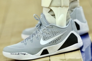 勇士球星库里今天上脚的是Kobe 9 EM战靴,灰白黑的配色简洁低调。
