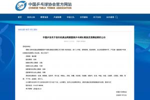 中国乒协官方:拟聘秦志戬总教练 男队主教练王皓 女队主教练马琳